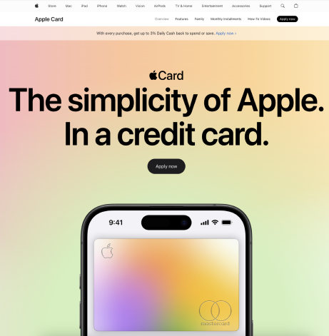 The navigation bar can have a 'Apple Card' option explicitly